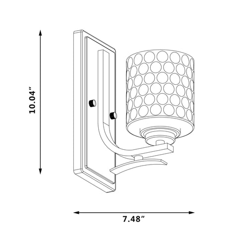 Classic and contemporary elements meet in this one-light wall sconce. This light is made of metal, with a chrome rectangular backplate, arched arms, and a glass lampshade with a water drop texture, creating a low-key but not vulgar appearance. It can not only bring light but also add color to your home. A single 60W medium-base bulb (not included) sits ensconced within to offer up a warm glow. Two years warranty is included.