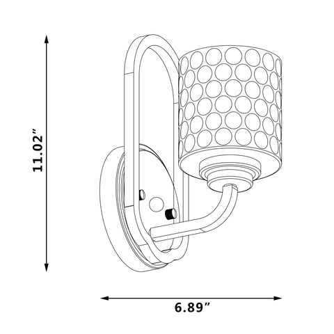 You can use this single-light wall sconce anywhere in your home. The design feature of the light body is the combination of a circular backplate and a ring shape. This combination of metal geometric shapes creates a unique aesthetic. Its single light is displayed by a cylindrical glass lampshade with a water drop texture, and the light-transmitting material can diffuse the light from the bulb inside to 60W (light bulbs not included). Dimmable lighting also makes it easy for you to choose a stylish way to illuminate the space you want to illuminate. Two years warranty is included.