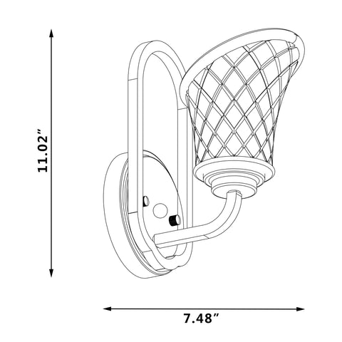 Made from metal, this single-light wall sconce is uniquely designed to effortlessly add a retro-industrial feel to your room. This wall sconce is finished in classic black, has a raised round backplate and a curved arm that can support a single light. The conical glass lampshade with geometric texture and the light diffused by the bulb makes the breath of ancient ways more full-bodied (light bulbs not included). It is not only beautiful but also compatible with dimming switches. Two years warranty is included.