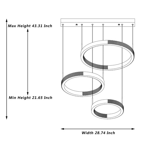 3-Light Statement Tiered LED Chandelier SYLED1293-BK