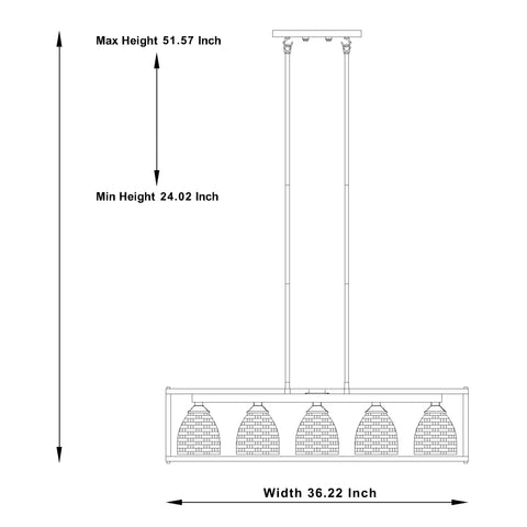This hardworking, 5-light linear pendant is perfect for dining rooms and kitchen islands. It embodies simple clean lines in finishes that strike a perfect balance of the elegant yet minimalist design. Measured 36.22"L*7.87"W*8.66"H, this 5-light rectangle kitchen island pendant with crystal accents can accommodate five E26-shape bulbs of up to 60W, which are not included. Plus, this light fixture is compatible with a dimmer switch to effortlessly take you from breakfast to dinner. Two years warranty is included.