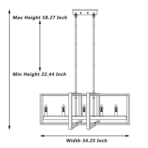 This eye-catching Kitchen Island Linear Pendant features a classic pattern commonly found on barn or farmhouse doors. Features a faux-painted wood enclosure. Its rectangular frame has an imitation wood grain finish and is accented with matte black bars. Inside the frame, the bulbs are housed inside intricately designed seeded shades which can create a lantern-like brilliance in your home. Accommodates five candelabra light bulbs (Not included). A two-year warranty is included.